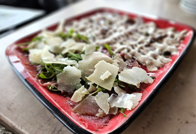 Halb Carpaccio d‘Alba und halb Vitello tonnato